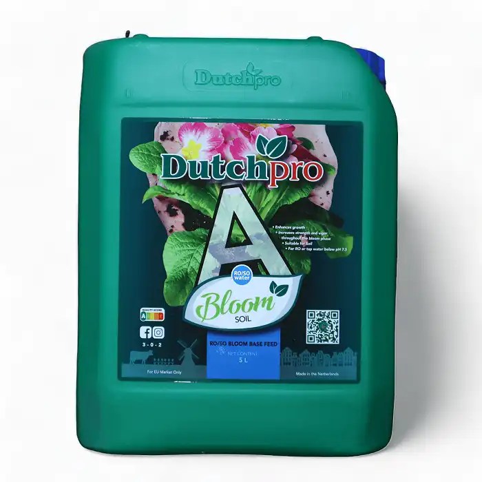 Grow y Bloom Soil, son fertilizantes especificos para cultivar en tierra que recomienda Dutch Pro, para la fase de crecimiento y floración, respectivamente.