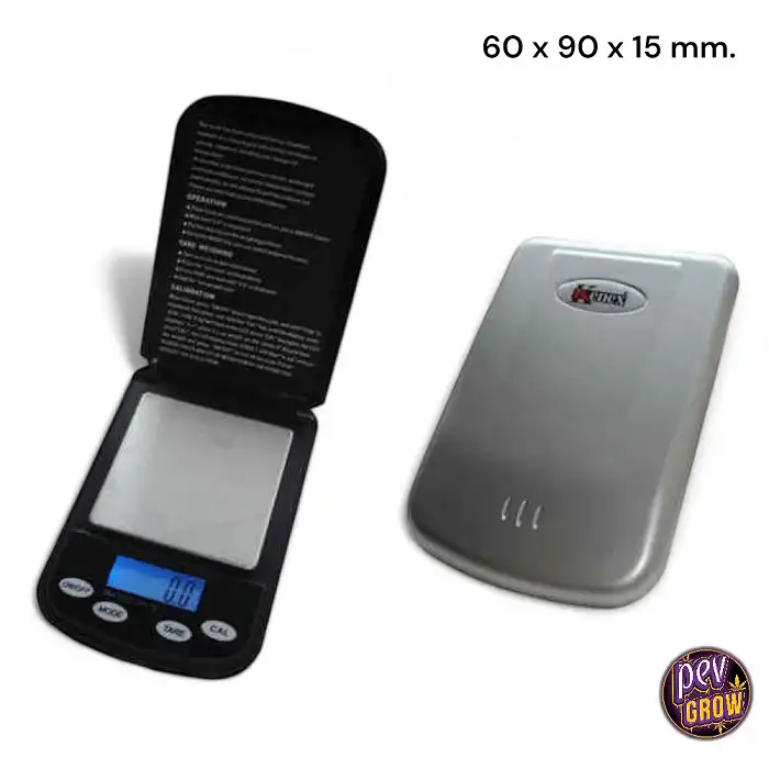 La Báscula Kenex Vortex no solo es potente en su rendimiento, sino también en su practicidad. Sus dimensiones reducidas (aproximadamente 11.5 x 6.5 x 1.7 cm) la convierten en una báscula de bolsillo, fácil de almacenar y transportar. Viene equipada con una tapa protectora que, además de resguardar la superficie de pesaje, puede usarse como bandeja para tus mediciones. Esta característica la hace perfecta para mantener la discreción, un valor muy apreciado por Alex, nuestro buyer persona, y por cualquier cultivador que valore la privacidad en su cultivo indoor.