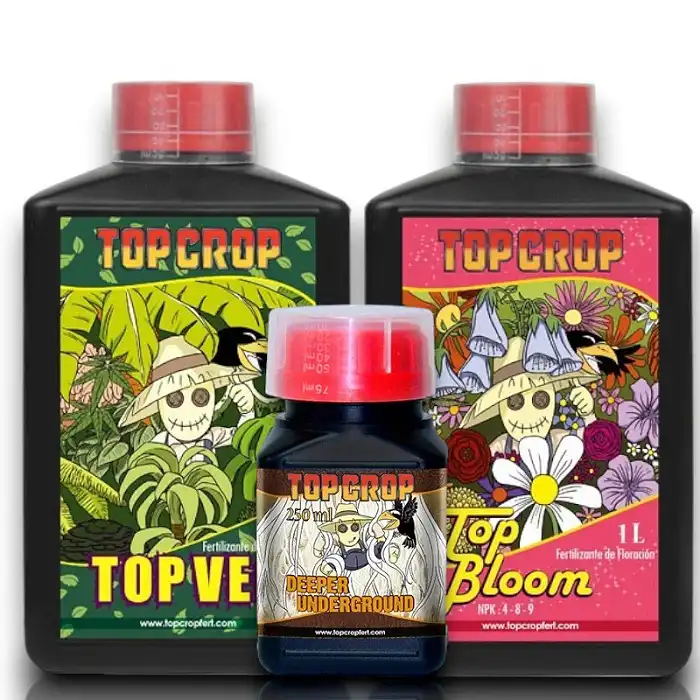 El Pack de Fertilizantes Top Crop Principiante ofrece nutrientes y estimulantes esenciales para el crecimiento y floración de tus plantas de cannabis. Incluye Top Veg, Top Bloom y Deeper Underground, ideal para cultivadores principiantes y experimentados.