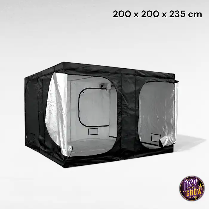 Esta joya del cultivo cuenta con una base metálica sólida y una cubierta exterior de Mylar 600D, lo que garantiza una reflectividad y durabilidad excepcionales. Gracias a su ingenioso diseño, ofrece varios puertos de acceso para ventilación y riego, asegurando que controlar el ambiente interior sea sencillo y eficaz. Parece hecho a medida para potenciar el crecimiento de tus plantas. Los 35 cm adicionales en altura son ideales para equipamientos adicionales, manteniendo el espacio vital para tus plantas intacto y asegurando que los conductos flexibles no toquen el techo en habitaciones bajas.