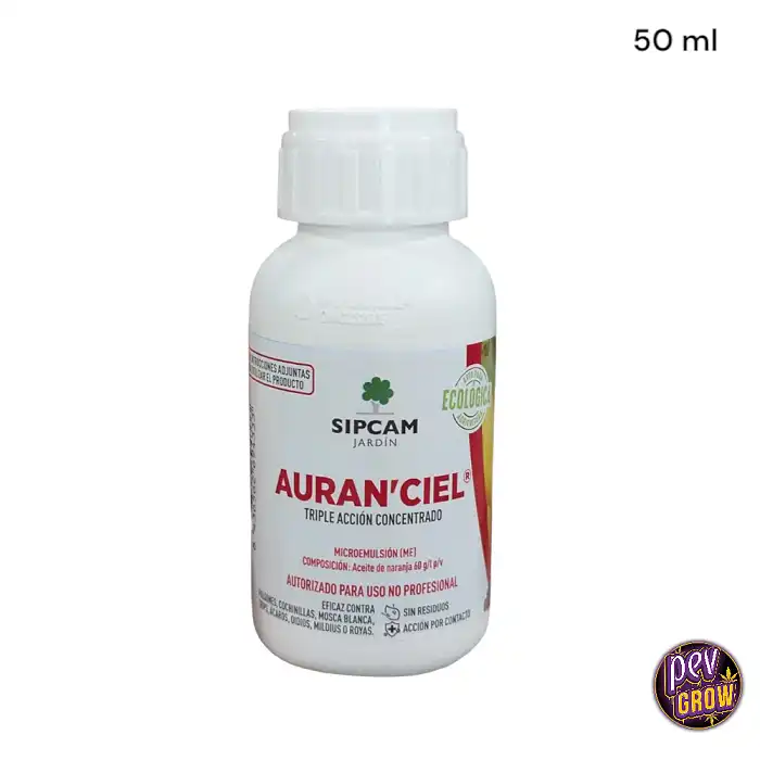 No dejes que las plagas y enfermedades arruinen la belleza de tu jardín. En Pevgrow, te ofrecemos Auran'ciel 50 ml Sipcam Jardín, la solución de triple acción que tus plantas necesitan. Confía en nuestra experiencia y en la calidad de nuestros productos para mantener tu cultivo sano y exuberante. ¡Haz tu pedido hoy y experimenta la diferencia de un cuidado profesional y ecológico!