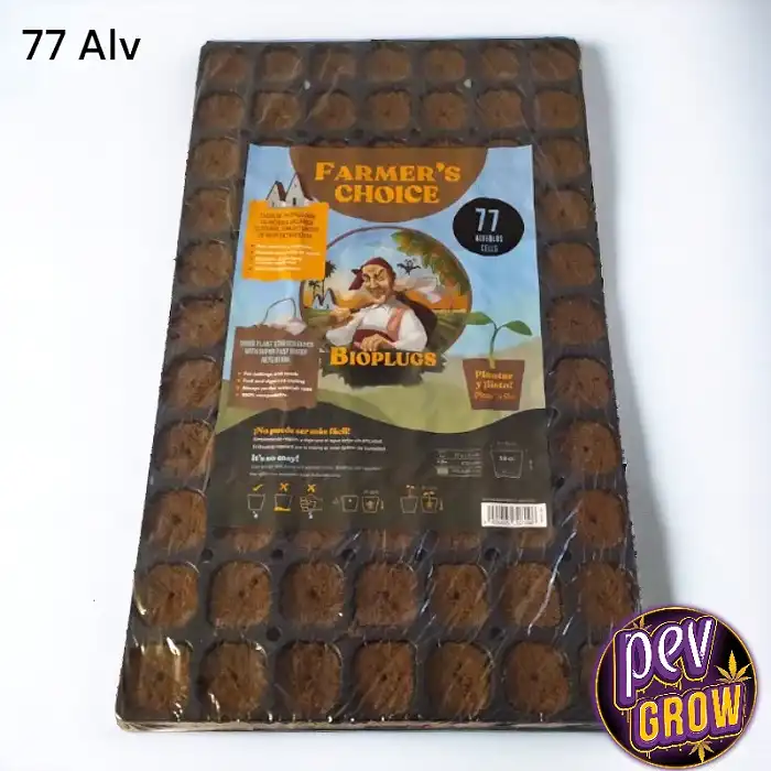 Las Bandejas Bioplugs de Farmer Choice se presentan en formatos prácticos y manejables, con alvéolos que facilitan la individualización de cada planta. Disponibles en tamaños de 77 y 104 alvéolos, se adaptan a cualquier escala de cultivo, desde el aficionado hasta el profesional. Cada Bioplug está diseñado para mantener la relación agua-aire perfecta, lo que permite que tus plantas desarrollen un sistema radicular fuerte y saludable en un ambiente controlado y natural.