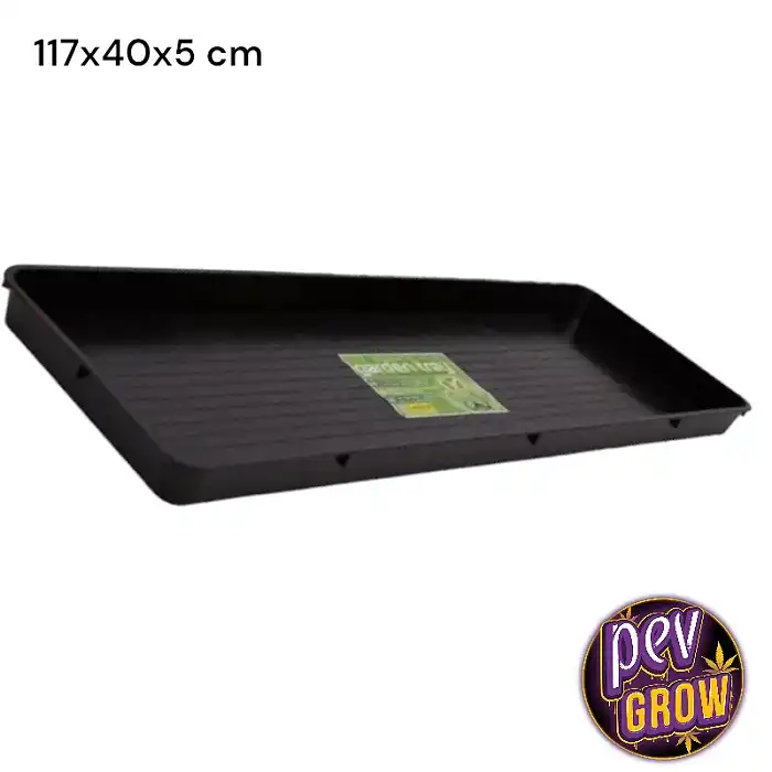 Esta bandeja de cultivo está fabricada con un plástico duro y robusto, capaz de soportar el uso continuado sin ceder ante la presión o el peso. Sus dimensiones de 117 cm x 40 cm x 5 cm la convierten en una opción ideal para espacios reducidos que requieren una optimización máxima. El color negro de la bandeja no solo aporta una estética profesional al armario de cultivo, sino que también contribuye a la absorción de calor, favoreciendo un microclima estable para las plantas.