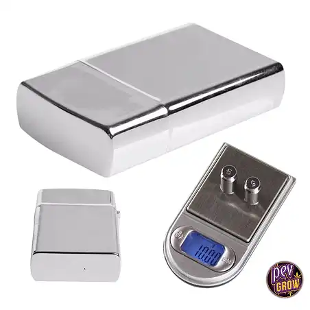 La Báscula de Ocultación Mini Zippo es una báscula digital de precisión diseñada para camuflarse como un encendedor tipo Zippo. Su apariencia idéntica a un objeto cotidiano la convierte en uno de los objetos para la ocultación más efectivos del mercado. Con una capacidad de hasta 200 gramos y una precisión de 0.01 gramos, es perfecta para pesar pequeñas cantidades con una exactitud milimétrica, ya sean hierbas, concentrados o cualquier otro material que requiera un pesaje delicado.