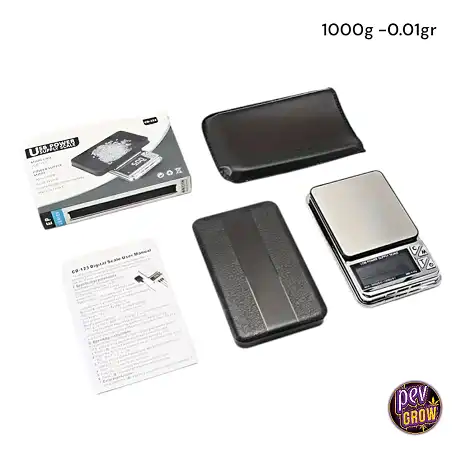 Esta báscula es una herramienta esencial para quienes buscan la máxima exactitud en sus mediciones. Con una capacidad de hasta 1000 gramos y una impresionante precisión de 0.01 gramos, te permite pesar con una fiabilidad inigualable. Su diseño en acero inoxidable no solo le confiere durabilidad, sino también un aspecto elegante y fácil de limpiar. Es el instrumento perfecto para asegurar que cada gramo cuenta, ya sea en tus proyectos de cultivo, para dosificar ingredientes en la cocina o para pesar objetos de valor como joyas.