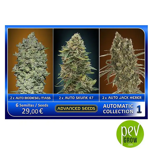 Този пакет съдържа 6 феминизирани автоцветящи семена: по 2 от Auto Biodiesel Mass, Auto Skunk 47 и Auto Jack Herer – всички от Advanced Seeds.