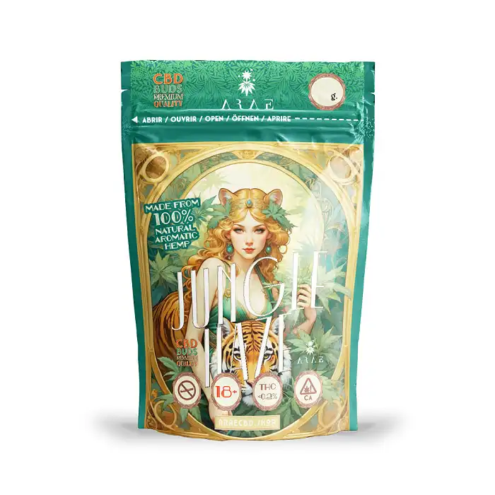La bolsa de marihuana Jungle Haze es un envase de aluminio con cierre zip especial para guardar flores de CBD o cogollos de cannabis de la mejor manera posible, ya que permite un gran aislamiento a la temperatura y humedad ambiental y se puede cerrar herméticamente. El potente olor de la yerba ya no será un problema gracias a estas bolsas de marihuana de PEV, y gracias a sus impresionantes diseños serás la envidia de todos tus colegas.