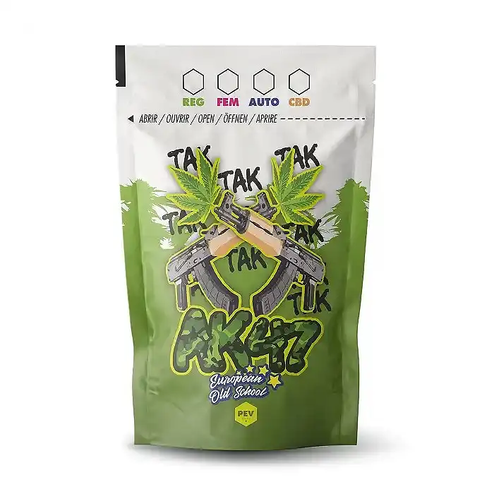La bolsa de marihuana AK 47 de PEV Seeds es un envase de aluminio con cierre zip especial para guardar flores de CBD o cogollos de cannabis de la mejor manera posible, ya que permite un gran aislamiento a la temperatura y humedad ambiental y se puede cerrar herméticamente. El potente olor de la yerba ya no será un problema gracias a estas bolsas de marihuana de PEV, y gracias a sus impresionantes diseños serás la envidia de todos tus colegas.