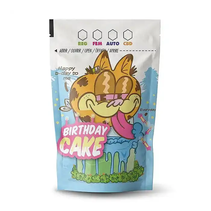 La bolsa de marihuana Birthday Cake de PEV Seeds es un envase de aluminio con cierre zip especial para guardar flores de CBD o cogollos de cannabis de la mejor manera posible, ya que permite un gran aislamiento a la temperatura y humedad ambiental y se puede cerrar herméticamente. El potente olor de la yerba ya no será un problema gracias a estas bolsas de marihuana de PEV, y gracias a sus impresionantes diseños serás la envidia de todos tus colegas.