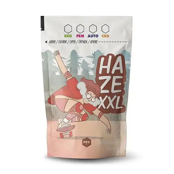 La bolsa de marihuana Haze XXL de PEV Seeds es un envase de aluminio con cierre zip especial para guardar flores de CBD o cogollos de cannabis de la mejor manera posible, ya que permite un gran aislamiento a la temperatura y humedad ambiental y se puede cerrar herméticamente. El potente olor de la yerba ya no será un problema gracias a estas bolsas de marihuana de PEV, y gracias a sus impresionantes diseños serás la envidia de todos tus colegas.