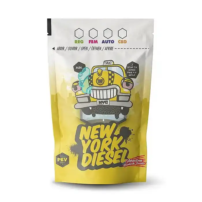 La bolsa de marihuana New York Diesel de PEV Seeds es un envase de aluminio con cierre zip especial para guardar flores de CBD o cogollos de cannabis de la mejor manera posible, ya que permite un gran aislamiento a la temperatura y humedad ambiental y se puede cerrar herméticamente. El potente olor de la yerba ya no será un problema gracias a estas bolsas de marihuana de PEV, y gracias a sus impresionantes diseños serás la envidia de todos tus colegas.