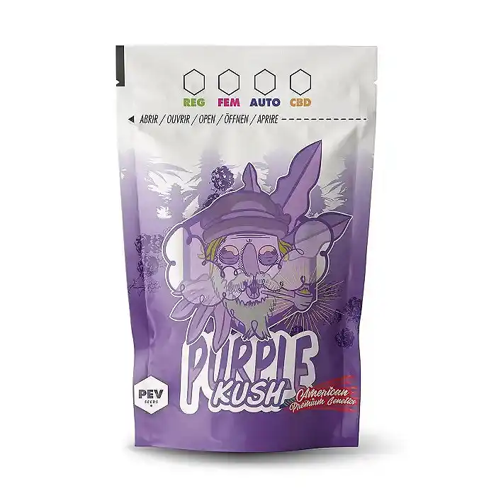 La bolsa de marihuana Purple Kush de PEV Seeds es un envase de aluminio con cierre zip especial para guardar flores de CBD o cogollos de cannabis de la mejor manera posible, ya que permite un gran aislamiento a la temperatura y humedad ambiental y se puede cerrar herméticamente. El potente olor de la yerba ya no será un problema gracias a estas bolsas de marihuana de PEV, y gracias a sus impresionantes diseños serás la envidia de todos tus colegas.