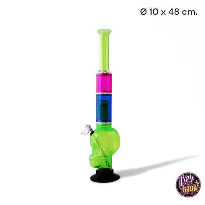 Elegir el Bong Acrílico «Calavera» Verde de 48 cm de Pevgrow es optar por una combinación de estilo, durabilidad y rendimiento. Aquí te detallamos sus principales beneficios: