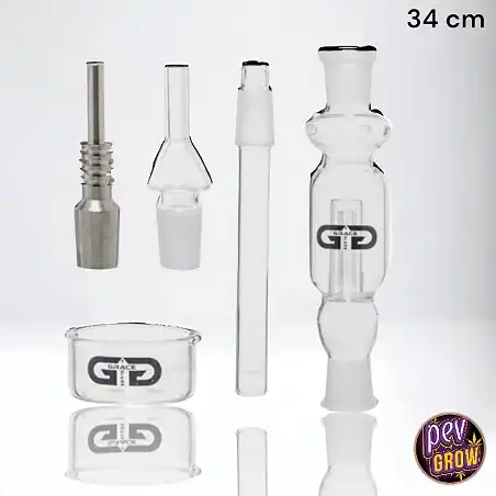 El Bong Cristal BHO Completo 34 cm es una herramienta esencial para los conocedores del cannabis que buscan disfrutar de sus concentrados con la mayor pureza y potencia. Este bong+dabber GG Nectar Collector es especialmente diseñado para el consumo de BHO y otras extracciones puras de la marihuana, permitiéndote apreciar cada matiz de tus resinas favoritas. Con su estructura de cristal de borosilicato, este bong no solo es robusto, sino que también ofrece una claridad estética que complementa cualquier colección de parafernalia cannábica.