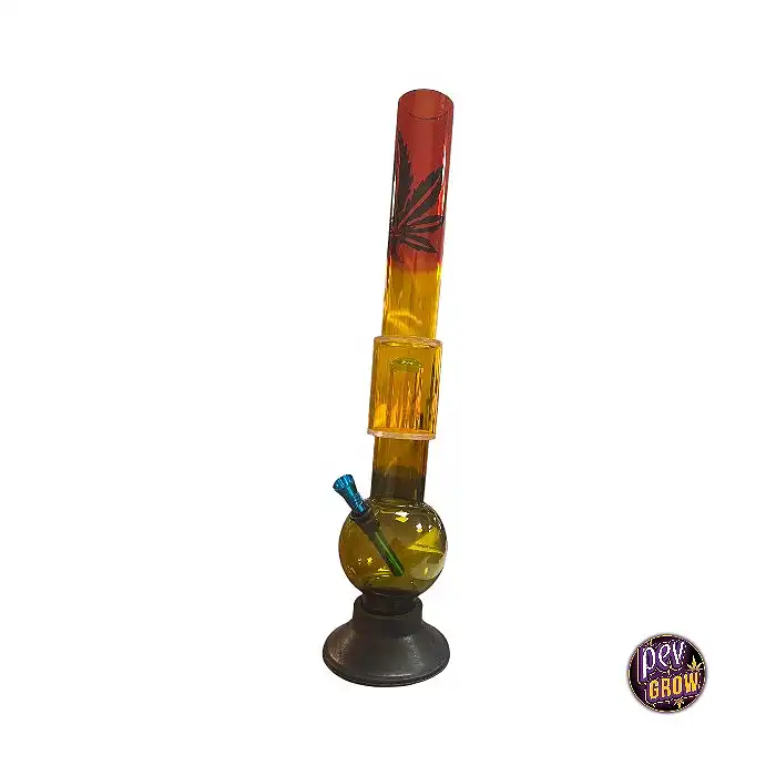 Utilizar el Bong Cristal Rasta 37cm es sencillo. Solo necesitas llenar la base con agua, colocar tus hierbas molidas en la cazoleta, encenderlas con un mechero soplete y aspirar suavemente desde la boquilla. El agua filtrará el humo, haciéndolo más fresco y agradable al inhalar. Gracias a su diseño inteligente, la limpieza y el mantenimiento también son fáciles, asegurando que tu bong esté siempre listo para la próxima sesión.