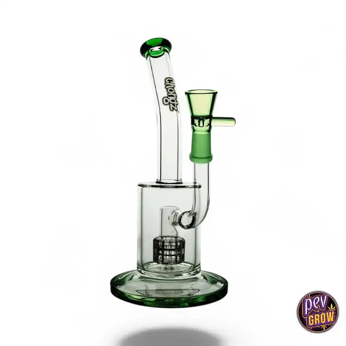 Este bong luce un acabado en cristal que resalta su claridad y un vibrante color verde en su diseño. Con una altura de 26 cm, es lo suficientemente compacto como para que lo lleves contigo a donde quieras, sin renunciar a ese volumen de humo que tanto aprecias. Ideal para quienes quieren hacer de cada sesión algo especial y adaptado a su estilo.