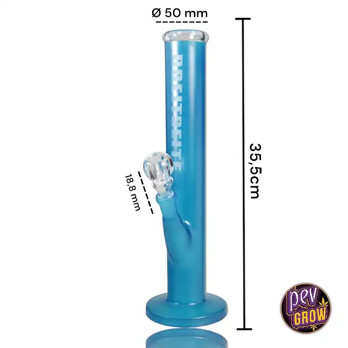 Este bong se presenta con una altura de 355 mm y un diámetro de 50 mm, lo que garantiza una cámara de humo amplia para una inhalación profunda y placentera. La conexión de 18,8 mm es el estándar de la industria, asegurando compatibilidad y facilidad de uso.