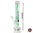 Este bong destaca por su diseño transparente con hojas de marihuana, simbolizando la pureza y naturalidad. La calidad del vidrio garantiza durabilidad y resistencia, mientras que su cámara de hielo es perfecta para enfriar el humo, ofreciendo caladas más suaves y frescas.