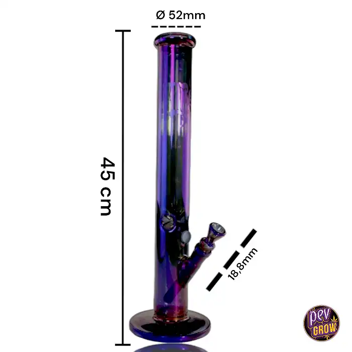 El Bong Cristal Ice Púrpura de 45 cm se utiliza para consumir tus flores CBD o tus mezclas favoritas de hierbas secas. Su sistema de filtrado y la posibilidad de añadir hielo lo convierten en la opción ideal para quienes buscan una experiencia de fumado más fresca y suave.