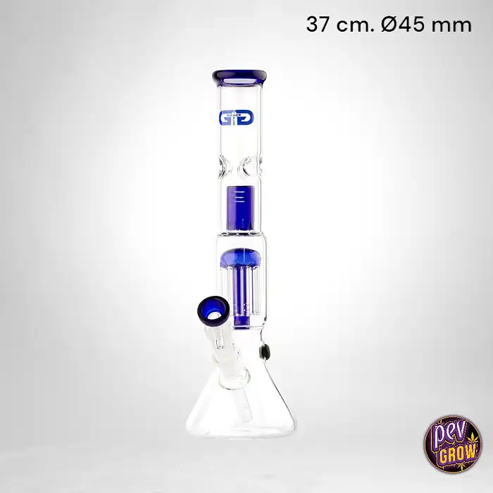 Este bong ha sido diseñado pensando en la durabilidad y la funcionalidad. Con una altura de 37 cm y un diámetro de Ø45 mm, ofrece una presencia imponente y una gran capacidad de agua para una filtración óptima. Está fabricado con cristal de 5 mm de espesor, lo que le confiere una resistencia y robustez notables. Además, cuenta con uniones de 18.8 mm para un flujo de aire eficiente y la posibilidad de añadir hielo, garantizando una fumada aún más fresca. Su percolador tipo Dome perc es clave para la dispersión del humo, y su base tipo beaker asegura una estabilidad superior.