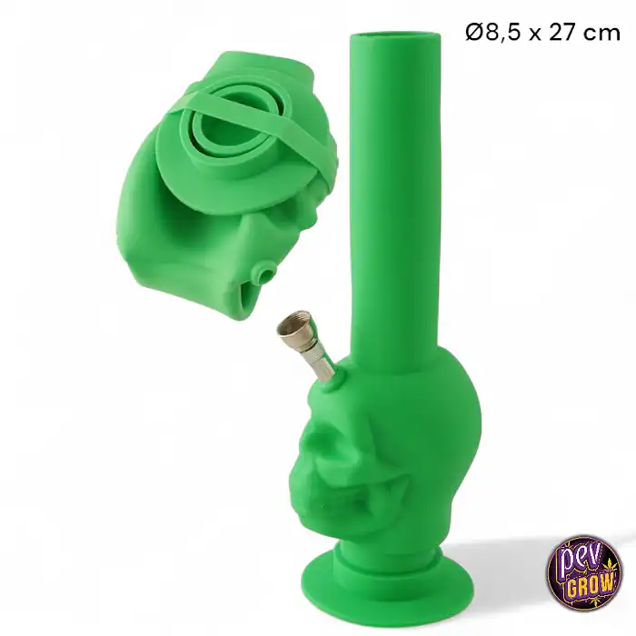 El Bong Plegable Verde de Silicona Sanitaria Skull de 27 cm es tu compañero ideal para disfrutar de tus sesiones con la máxima comodidad y resistencia. Fabricado con silicona de grado sanitario, este bong es prácticamente indestructible, plegable para un transporte discreto y muy fácil de limpiar. Su diseño de calavera en color verde le da un toque único y atrevido, perfecto para quienes buscan estilo y funcionalidad en un solo producto.