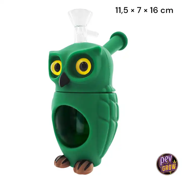 Bong de Vidrio-Silicona Búho Verde 16cm