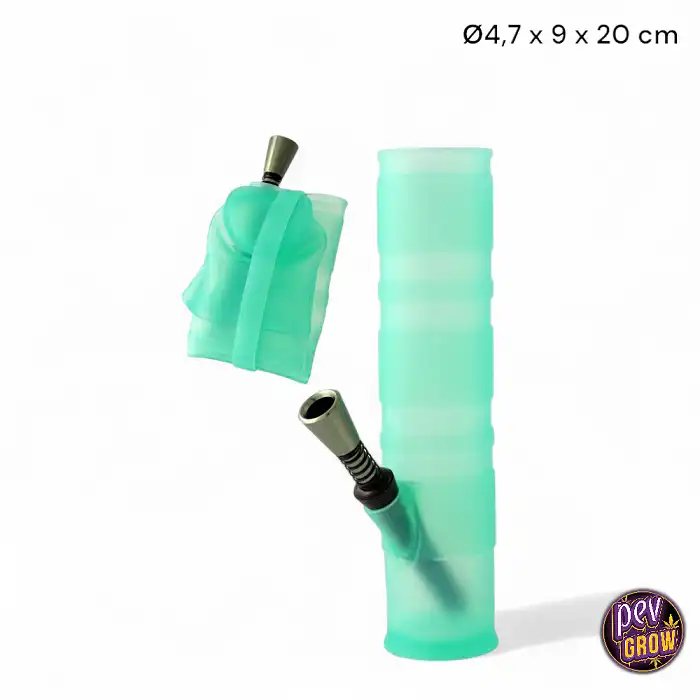 Imagina tener la libertad de disfrutar de tus sesiones de fumada favoritas en cualquier lugar, sin preocuparte por roturas o complicaciones. Este bong de silicona de 20 cm es la solución perfecta para ti. Diseñado para ser completamente plegable, se guarda con facilidad en cualquier mochila o bolsillo, convirtiéndose en el accesorio indispensable para tus viajes, festivales o simplemente para usarlo en casa con total tranquilidad. Su vibrante color verde no solo le da un toque de estilo, sino que también lo hace destacar entre otros accesorios de parafernalia cannábica.