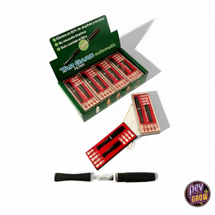 La Boquilla Automática TG Tar Gard es un innovador accesorio diseñado para mejorar tu experiencia al fumar. Su función principal es filtrar las sustancias nocivas presentes en el tabaco, como el alquitrán y la nicotina, antes de que lleguen a tus pulmones. A diferencia de otros filtros, esta boquilla está pensada para no modificar el sabor original de tu cigarrillo, permitiéndote disfrutar de cada calada con mayor pureza y menos preocupaciones. Es un producto esencial dentro de nuestra sección de Head Shop y Parafernalia, ideal para quienes buscan un consumo más consciente.