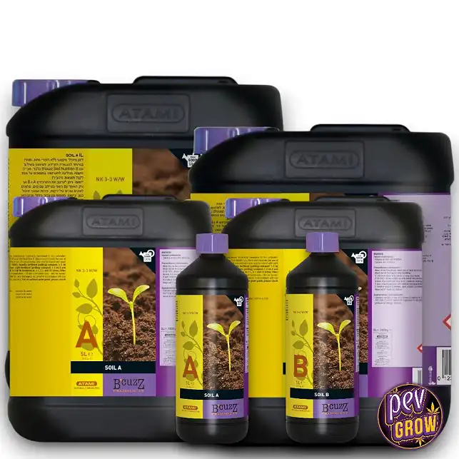 Atami B'cuzz Soil A&B és el nutrient base mineral en dues parts dissenyat per establir una base sòlida de creixement ràpid i sa en plantes cultivades en sòl. Aquesta fórmula concentrada subministra tot el necessari perquè les teves plantes desenvolupin arrels fortes, tiges resistents i fullatge vibrant, preparant el terreny per a una collita abundant.