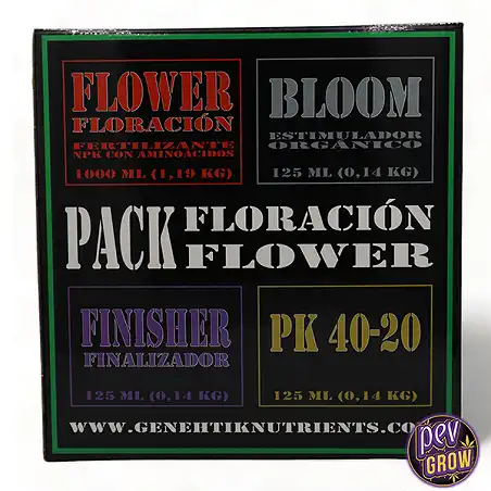 El Genehtik Nutrients Pack Floració és la solució completa per transformar plantes mitjanes en monstres pesats i coberts de resina sense haver de comprar botes separades. Aquest kit ofereix l'equilibri nutricional exacte que necessita la teva collita des dels primers pistils fins al rentat final, assegurant que aprofitis al màxim el potencial genètic de cada llavor.