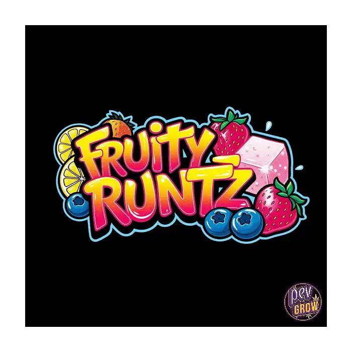 Imagina't la propera collita: colles tan gruixudes que necessiten suport, cobertes de resina amb una aroma que recorda a una bossa de caramels tropicals amb un toc gasós i terros. La cerca del fenotip Fruity Runtz és gratificant, amb algunes plantes que desenvolupen colors violats intensos i taronges sobre un fons verd glaçat, creant un atractiu visual impressionant. La teva cambra de secatge olorarà a èxit.