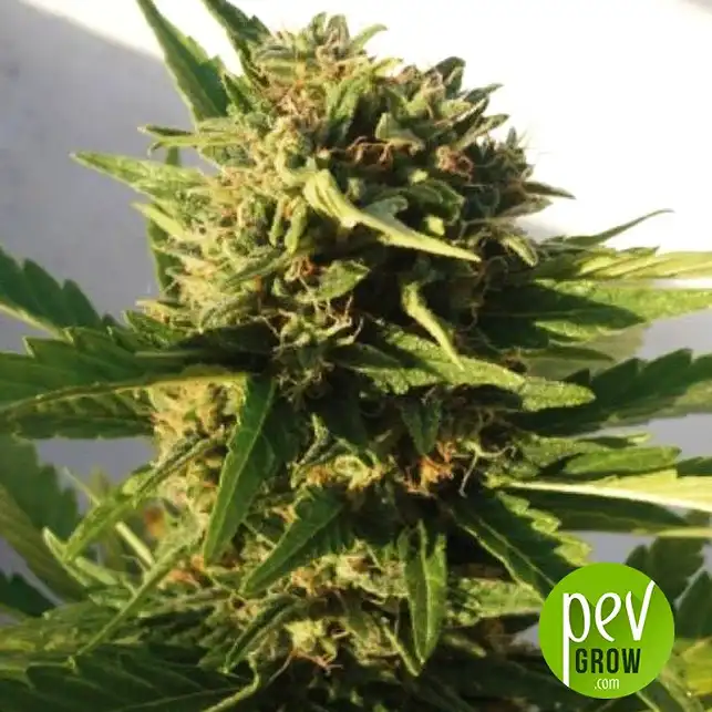 Autoflorent feminitzada de Buddha Seeds. Cicle de 65 dies, dificultat baixa, ideal per a microcultius interiors o cultius encoberts a l'exterior.