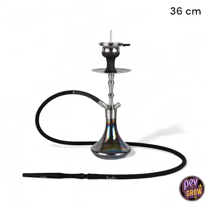 La Cachimba Aladin MVP360 es un referente en el mundo de las shishas, reconocida por su excepcional relación calidad-precio y su diseño innovador. Fabricada por la prestigiosa marca alemana Aladin, esta cachimba combina la robustez del acero inoxidable V2A con una estética moderna y una base de vidrio con efecto arcoíris que la convierte en una pieza visualmente impactante. Su tamaño compacto de 36 cm la hace ideal para llevarla contigo a cualquier lugar, sin sacrificar un rendimiento de fumada superior.