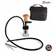 Imagina tener la libertad de disfrutar de una sesión de shisha de calidad donde quieras. Esta cachimba de aluminio 5T negra es mucho más que un simple accesorio; es tu pasaporte a momentos de relajación y disfrute, diseñado para ser tan portátil como elegante. Con una altura de 29 cm, es la opción ideal para quienes buscan discreción sin sacrificar la experiencia. Su mástil de aluminio y su robusta base de cristal no solo le otorgan una estética moderna, sino que también aseguran una durabilidad excepcional. Además, viene equipada con todo lo necesario para que empieces a usarla desde el primer momento, incluyendo una práctica maleta de transporte que facilita llevarla a cualquier aventura.