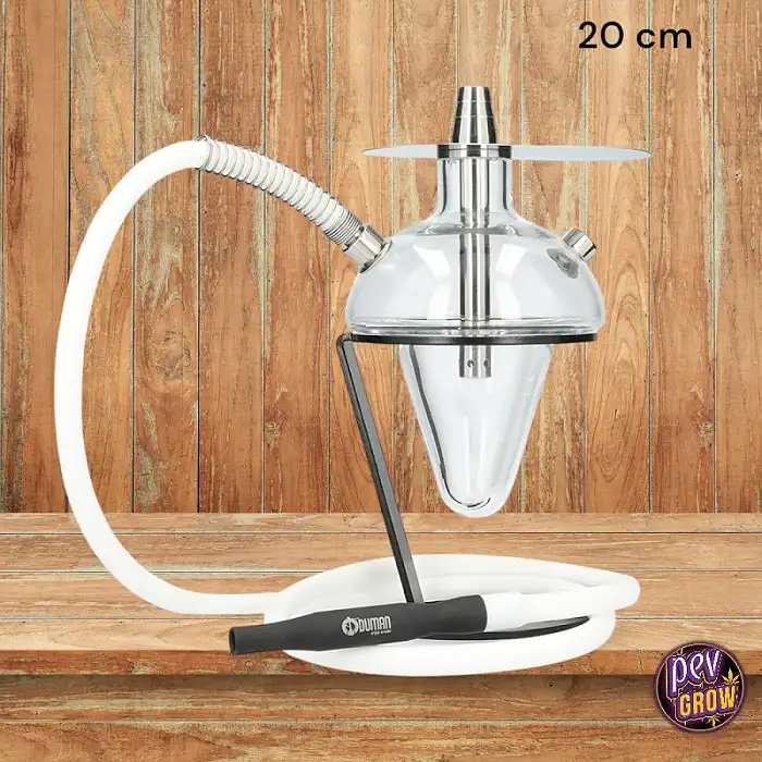 La Cachimba Oduman N5-Z Junior es pequeña en tamaño, pero enorme en estilo y potencia. Con sus 20 cm de altura, es una compañera de viaje perfecta que te acompaña a donde vayas, asegurando que siempre puedas disfrutar de un buen fumado. Ver el agua burbujear en su cuerpo de cristal mientras inhalas suavemente es simplemente delicioso.