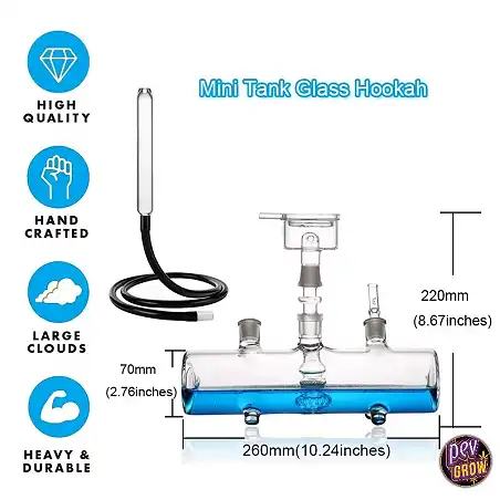 Fabricada en cristal de alta calidad, la cachimba pequeña diseño tanque es la mezcla perfecta de resistencia y estética. Cada inhalación es suave, ya que el humo pasa a través del agua antes de entrar en tus pulmones, enfriando y filtrando las impurezas para hacer tus sesiones más placenteras que nunca.