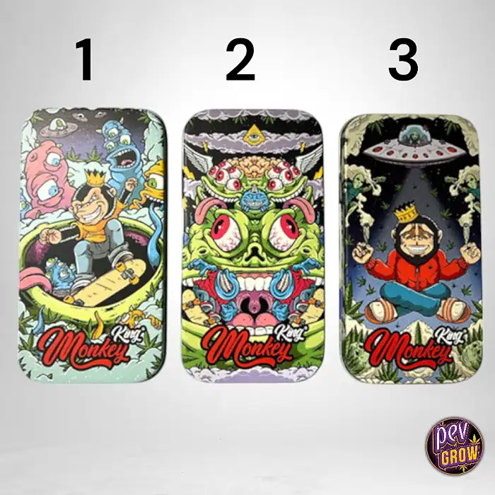 Utilizar la Caja Metal 11.5x6x2 cm. Monkey King 3 es tan sencillo como abrir su tapa deslizable y colocar allí tus objetos favoritos, como papel de liar, un grinder, o cualquier otro accesorio que quieras mantener a salvo. Al cerrarla, te aseguras de que todo permanecerá en su lugar, protegido y seguro.