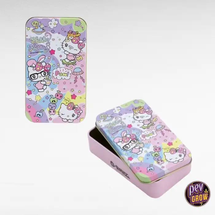 ¿Has visto nuestra colección de cajas de metal pequeñas? ¿Quieres mantener tus flores CBD y accesorios de fumador en orden y con estilo? En Pevgrow, tu Head shop de confianza, tenemos el producto ideal para ti: la Cajita Metal Hello Kitty 11.5x6.5x2 cm. Fiesta Pop, un accesorio imprescindible para los amantes de la cultura pop y el diseño kawaii.