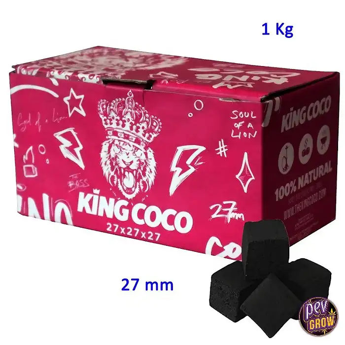 Este paquete de 1kg de carbón King Coco viene con cubos de 27x27x27 mm, un tamaño estándar y muy popular entre los aficionados a las cachimbas. Su formato compacto facilita su manejo y almacenamiento. Es un producto de alta calidad que se integra perfectamente con cualquier tipo de accesorios para shishas, garantizando siempre el mejor rendimiento.