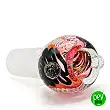 La cazoleta ovalada está fabricada en vidrio con un diseño de formas abstractas y colores diversos, con un apéndice de acople que funcionará a la perfección con tu pipa.