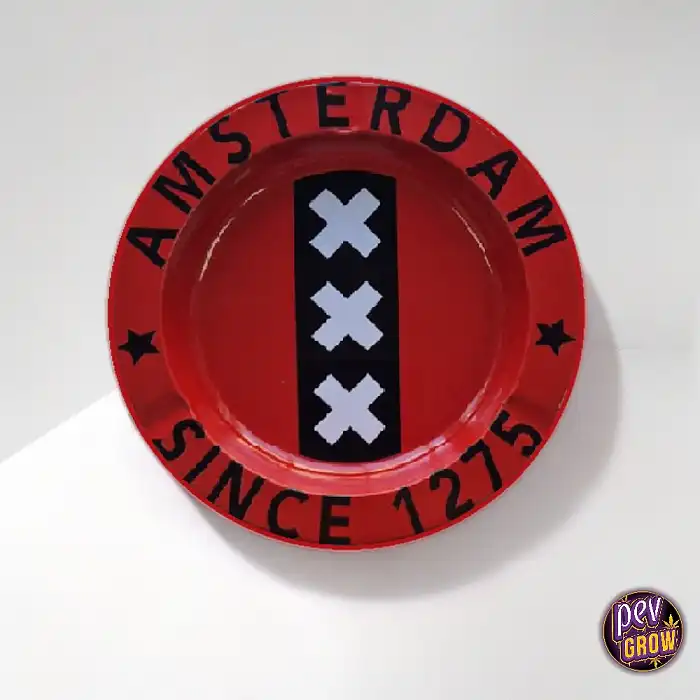 ¿Estás buscando un cenicero original guapo? Pues el Cenicero de Metal Amsterdam es ideal para tí, porque además de bonito y barato es muy práctico y resistente, ya que está fabricado con metal rígido muy resistente, es redondo y plano, mide 12 cm de diámetro, y lleva 4 muescas para apoyar cigarros o lo que sea que estés fumando. En la parte central muestra el logotipo de Amsterdam XXX y el mensaje "Enjoy Smoking" Gracias a su bajo precio y su bonito diseño, representa un regalo ideal para ese colega que ama la cultura cannábica de los Países Bajos. ¡Compra al mejor precio en Pevgrow!