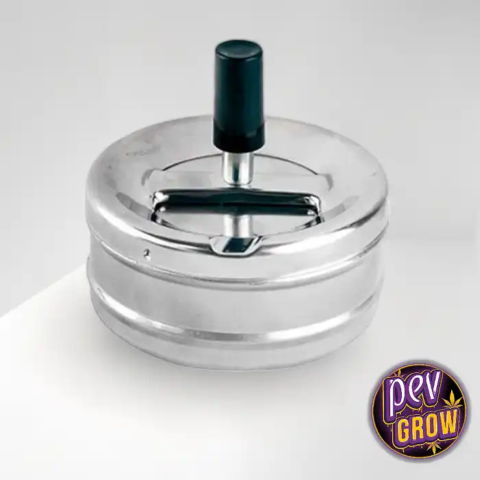 El Cenicero Original Presión Giratorio Cromado 9cm es la solución que necesitas para fumar en cualquier espacio sin riesgo a que el viento esparza las cenizas de tus cigarros o porros. Es un cenicero metálico, con la cubierta cromada para darle un toque moderno y bonito, y lo más destacable es su función de presión giratoria que se activa al darle a la palanca que contiene en la parte superior, que abre las tapas para que se introduzca la ceniza en su interior. Es redondo, mide 9 cm de diámetro, y contiene muescas para apoyar el cigarro sin que se caiga.