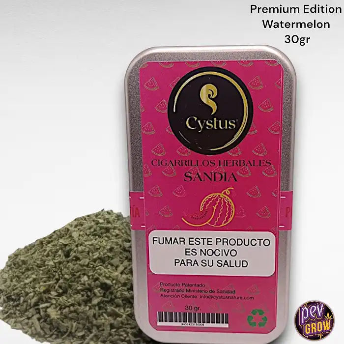 En Pevgrow, tu Head shop de confianza, encontrarás el Cigarrillo Herbal Cystus Premium Edition Sandía al mejor precio del mercado. Además, puedes explorar nuestra amplia gama de productos y accesorios como tabaqueras o carteras para tabaco de liar para complementar tu experiencia.