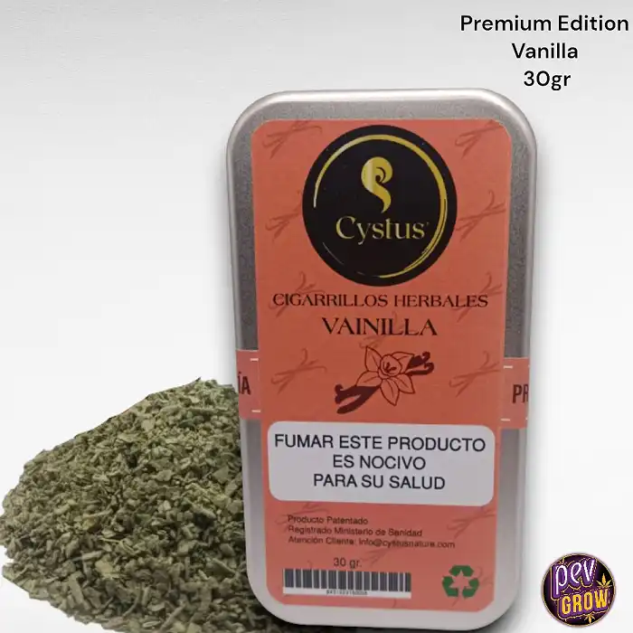 El Cigarrillo Herbal Cystus Premium Edition Vainilla es la elección ideal para quienes buscan una alternativa sin tabaco. Disfruta de 30 gramos de hierbas selectas con un toque de vainilla, presentadas en una elegante lata que mantiene su frescura.