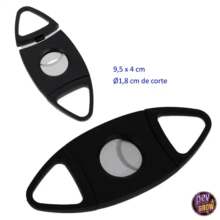 Su elegante acabado en acrílico negro no solo le confiere un toque sofisticado, sino que también lo hace increíblemente ligero y duradero. Con solo 9.5 cm de longitud, este cortapuros es tan compacto que puedes llevarlo discretamente en cualquier bolsillo, listo para cuando el momento de disfrutar de un buen puro se presente. Es el complemento perfecto para tu colección de parafernalia, combinando funcionalidad con un estilo que te representa.