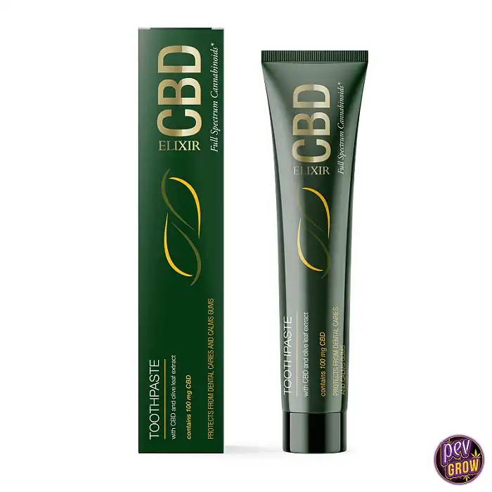 Nuestra pasta dental CBD Elixir contiene 100 mg de CBD y extracto de hoja de olivo, con el espectro completo de cannabinoides para mantener tus encías sanas, fortalecer tus dientes y brindarte un aliento fresco. Sin colorantes, aceites minerales ni fragancias artificiales. Libre de sulfatos y alérgenos. Hemos añadido clorofila como colorante natural. Contenido total: Cada paquete contiene 75 ml de producto.
