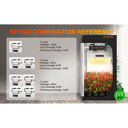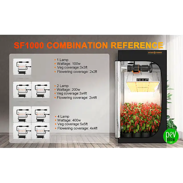 Je optimalizováno pro květovou plochu 60x60 cm (2x2 ft). Pro vegetativní růst lze efektivně pokrýt až 90x90 cm (3x3 ft).