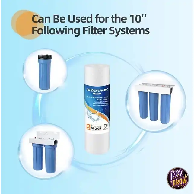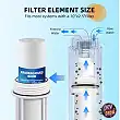 Jedná se o standardní 10palcovou vložku (přibližně 25,5 cm x 6,2 cm). Pasuje do většiny běžných podrezervárových systémů reverzní osmózy a zahradních držáků vodních filtrů.