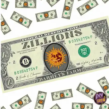 Zillions Feminizovaná semena od Barney's Farm jsou vaší vstupenkou k profesionálnímu pěstování: silný, chutí nabitý hybrid, který v interiéru dává až 650 g/m² a venku úžasných 2,5 kg (5,51 lb) na rostlinu, a to vše již za 60–65 dní kvetení.