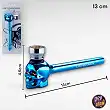 Die 13 cm lange Kristallpfeife mit Totenkopf bietet ein ästhetisches Design mit einem transparenten blauen Glas-Schädel und einer robusten Metallschale, die Stil mit einer qualitativ hochwertigen Raucherfahrung kombiniert. Mit ihren 13 cm ist sie das perfekte Werkzeug für ein komfortables und tragbares Erlebnis, während sie die Reinheit des Geschmacks bewahrt.